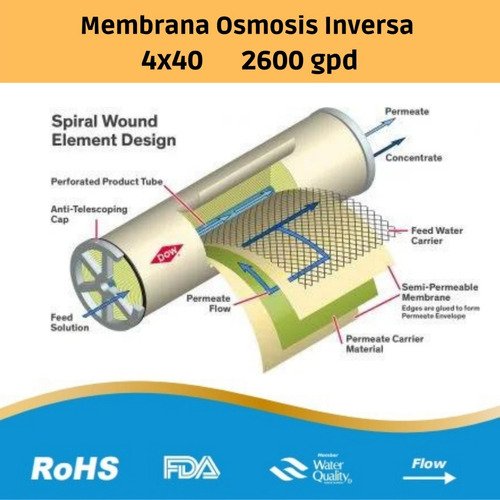 IMPORTANTE: Esta membrana está verificada en su rendimiento por organismo certificador internacional. NO SE ACEPTARÁN DEVOLUCIONES POR ARGUMENTO DE RENDIMIENTO, ya que desconocemos las condiciones de operación del equipo donde se instala y hay un rango de 1500 a 2600 gpd según esta variación.