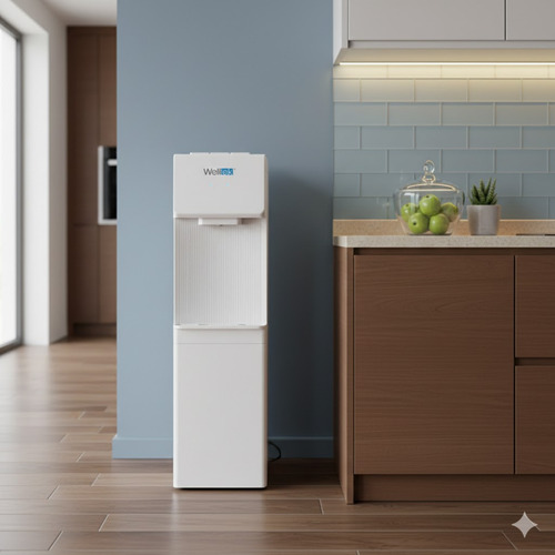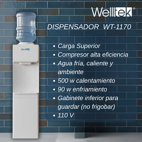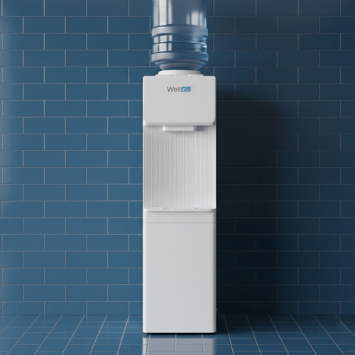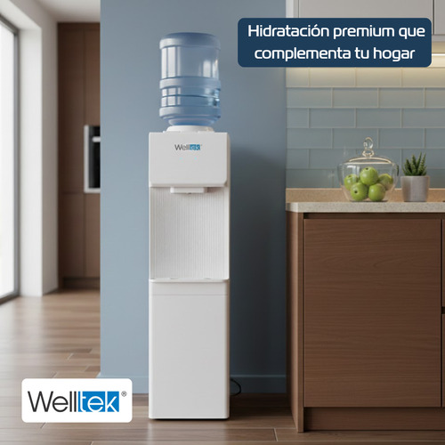 Dispensador Welltek de garrafón carga superior para agua fría y caliente.