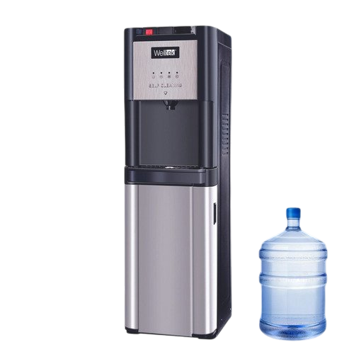 Dispensador Welltek de garrafón oculto con frente de acero inoxidable